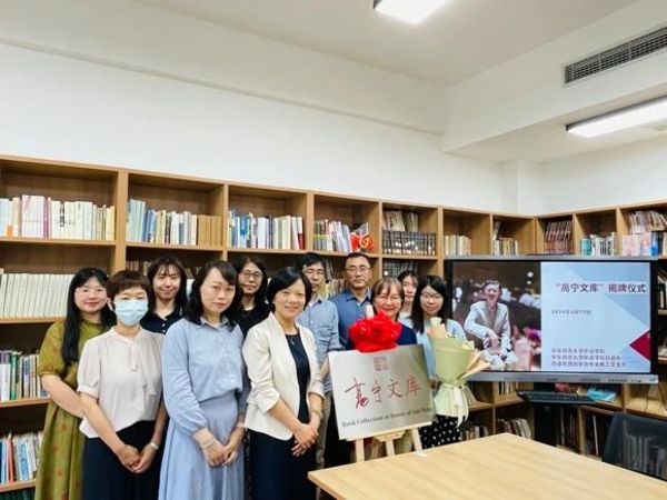 在全体师生见证下,孙孟红女士与韩春红书记共同为“高宁文库”揭牌,宣布“高宁文库”正式成立,全场响起热烈的掌声。“高宁文库”牌匾中“高宁”二字为高老师生前签名;上方有“高宁藏书”印,是高老师的藏书章。