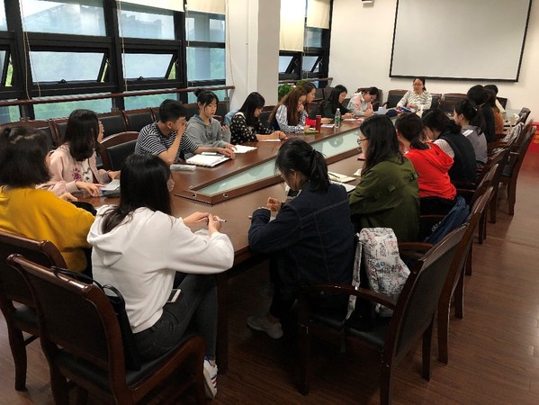 在共同学习习近平总书记在北京大学的重要讲话内容后,与会师生代表进行了深入分享交流。首先,叶青老师提出,青年同学应该认真学习、领会、践行习总书记对青年提的四点要求,将总书记提到的“当代青年是同新时代共同前进的一代,广大青年既拥有广阔的发展空间,也承载着伟大的时代使命”这一定位牢记于心,把 “小我”成长与国家发展、民族复兴的“大局”紧紧联系在一起,要坚定政治信仰、培育家国情怀、学会理性思考、勇于尝试创新,作为外语专业的员工,既要具有国际视野,又要扎根中国大地,肩负起社会主义建设者和接班人这一时代使命。