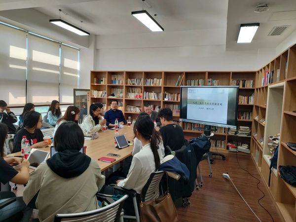 在互动环节,王加兴教授一一回答了同学们提出的问题,并强调在进行跨学科研究时需要真正把该学科的知识学会,讨论氛围热烈。最后,胡学星教授对王教授表达了感谢,并相信本次讲座中跨越古今中外的丰富知识、对洛特曼文学语言观的新发现,将会极大地扩充同学们的知识结构,开阔其学术视野。
