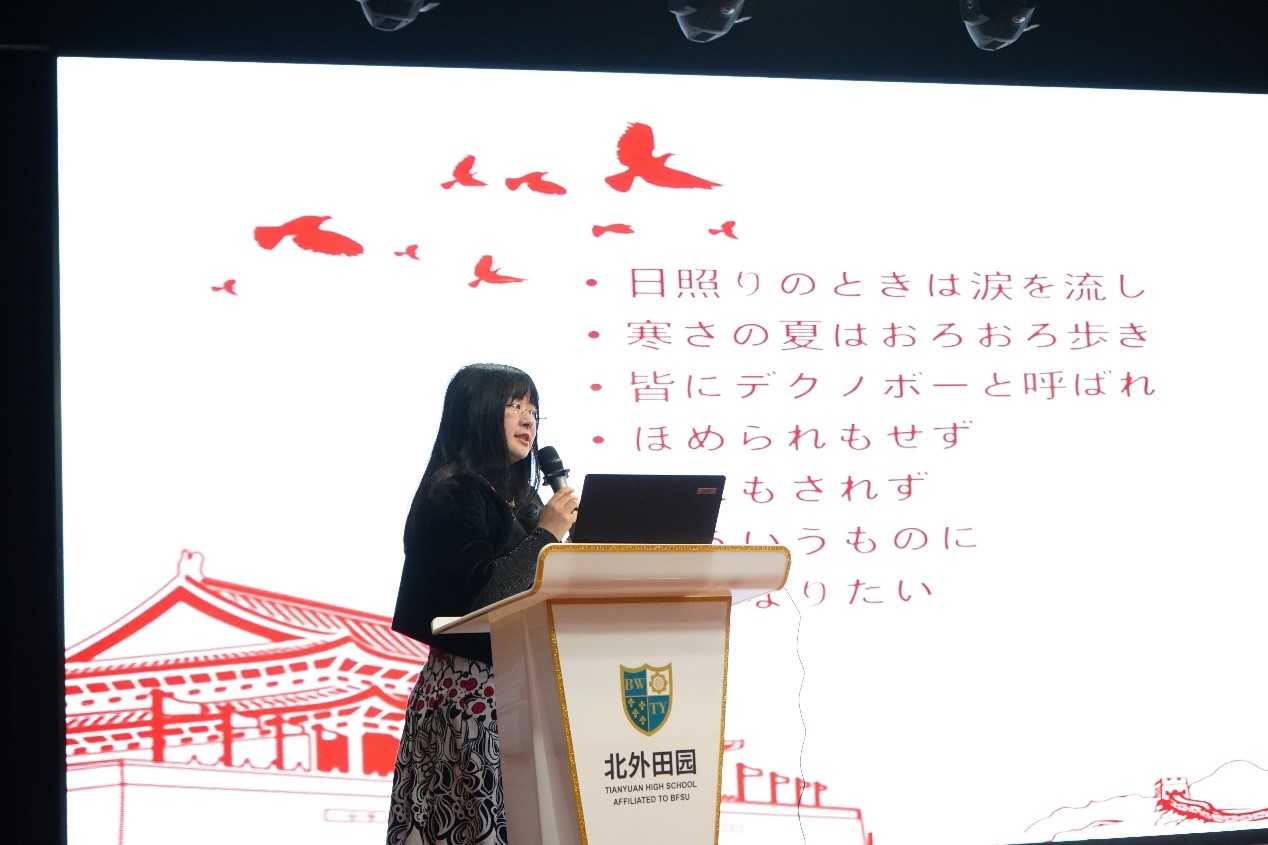 在宣讲过程中,田园高中的同学们认真听讲,积极互动,踊跃参与长征知识竞答,并就小语种学习中的困惑与四位宣讲同学进行了深入交流。最后,2020级学术型研究生党支部书记、日语系教师金晶老师借宫泽贤治的诗歌《不畏风雨》,从“青春、理想、奉献”三个角度出发,向学子们表达了美好的祝愿。