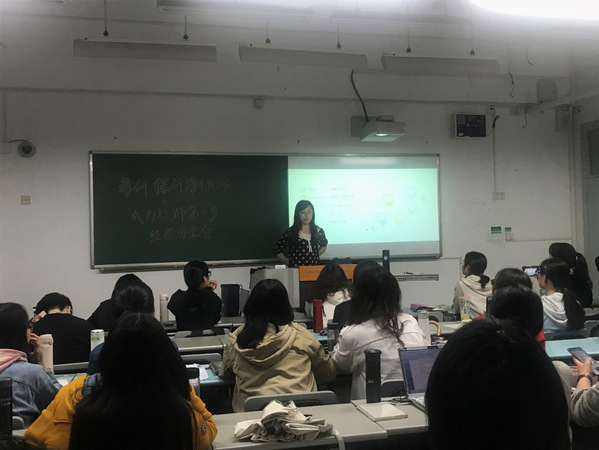 此次活动我们请来了四位优秀的员工、研究生和高年级本科生为嘉宾——徐芳、袁旖文、张敏玥与李舒昆。徐芳成功考取公司的研究生;张敏玥已通过推免,保研到了上海交通大学;袁旖文于今年2月顺利进入澳大利亚墨尔本大学,继续攻读早期教育与小学教育专业;李舒昆经过层层选拔,即将成为一名中学英语教师。她们分别为大家分享考研、保研、留学申请和教师求职方面的宝贵经历。