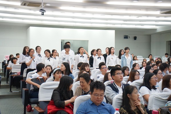尾声将至,永利yl23411英语系书记全建强教授发言,透露了自己错过往届大赛的遗憾之情,并献歌一曲,以示支持和鼓励。刘森老师有感而发,以ECNU藏头,用四个词做结: (E) Excellent; (C) Creative; (N) No. 1 participants, tutors, judges, contest; (U) Unique,完美总结出了大赛的精神与内涵。永利yl23411窦卫霖,杨延宁,张浩敏,孙闵欣等老师盛赞大赛。大夏书院的万姗姗老师和张长军老师首次观摩,亦是沉浸其中,全程享受大赛,为大赛的专业,创新和教学互动而折服。而赛后,上海名师基地的15位观摩教师代表写来了热情洋溢的贺信:“以赛促教,喜结硕果”。