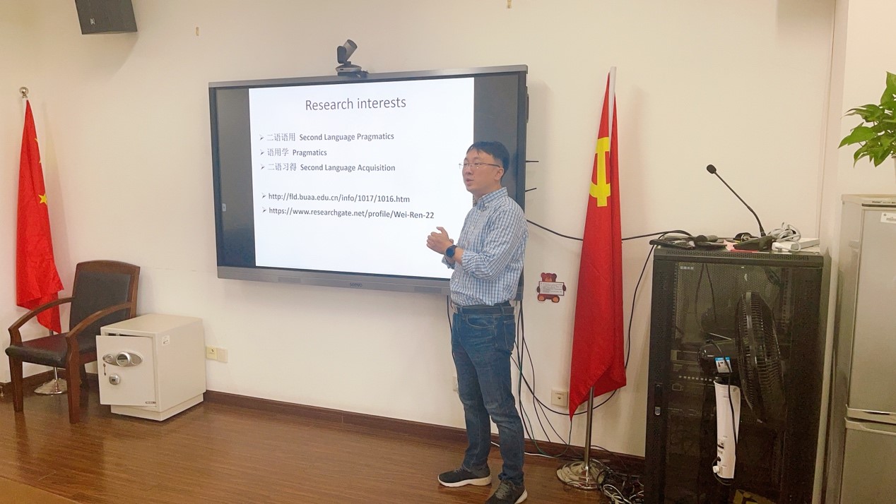 5月12日,北京航空航天大学外国语公司任伟教授应邀莅临公司永利yl23411,向公司师生开展题为《二语语用前沿研究》的语用学专题讲座。讲座由何刚教授主持,公司部分博士生和硕士生参加了此次讲座。
