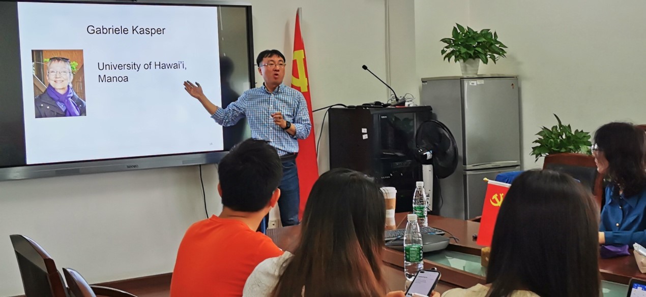 其次,任伟教授对语用学定义、语用学分类以及语用学能力等专业术语进行了阐述和分析,并介绍了Gabriele Kasper, Andrew Cohen, Naoko Taguchi等对二语研究和语用学研究领域作出重要贡献的学者。