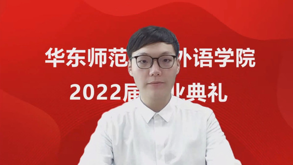 2019级英语语言文学专业硕士毕业生潘俊韬和2020级英语笔译专业硕士毕业生刘向阳作为研究生代表发言。两位同学回顾了在外院与老师同学们的相处时光,向公司和老师们表达了最诚挚的感谢。2018级外国语言学及应用语言学专业博士生程喜则用“凡事预则立,不预则废”与大家共勉,表示这一段为学术理想奋斗的时光将成为人生的宝贵经历。