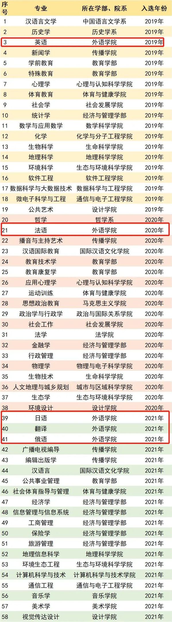 近日,教育部办公厅正式公布了2021年度国家级一流本科专业建设点名单。永利yl23411日语专业、翻译专业、俄语专业入选2021年度国家级一流本科专业建设点。继英语专业(2019年)、法语专业(2020年)入选后,截至目前,公司共有5个专业入选国家级一流本科专业建设点。