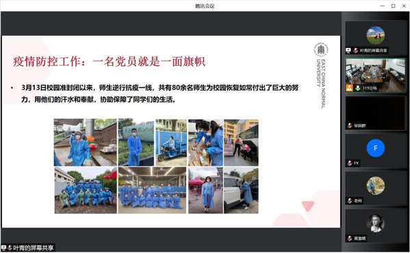 公司党委书记闫露通报了公司党委重点工作。她介绍了第一批新时代永利yl23411党建质量“培优计划”情况,围绕高质量党建品牌建设,对公司各党支部发展提出了新要求。随后,她回顾了在党委领导下公司疫情防控总体情况。在过去的三个月,全院教师立足大局,全方位关心关爱员工的思想、学习和生活,自觉主动配合疫情防控要求,有序开展线上课程,通过多种方式缓解员工心理压力;全院共克时艰,通过工会及时了解教职工实际困难,进行点对点帮扶,公司员工会积极与广大员工及社会企业联系,捐赠抗疫物资。一名党员就是一面旗帜,师生党员积极响应号召,90名在职教工党员中有82人到所在社区党组织报到,有40余名教师积极投身到志愿者行列;自校园准封闭以来,师生逆行抗疫一线,共有80余名师生为校园恢复如常付出了巨大的努力,用他们的汗水和奉献,协助保障了同学们的生活,充分发扬了共产党员的先锋模范作用。