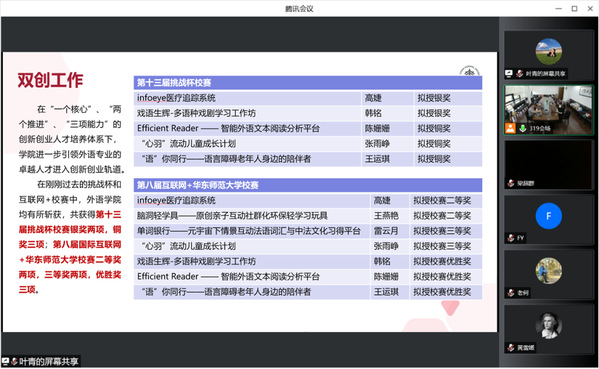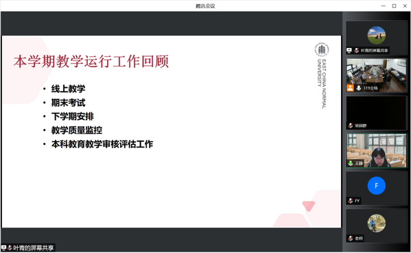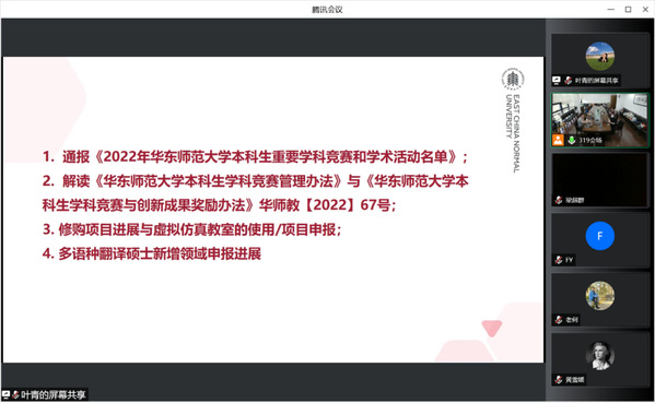 副经理王静对本科教学工作进行回顾。在各位老师的共同努力下,本学期各专业线上教学有序开展,期末考试顺利结束。她提醒老师们要持续关注教学质量监控与本科公司产品审核评估工作,以更优质的课程不断推进卓越育人体系建设,提升人才培养质量。在专业建设方面,公司日语、俄语、翻译三个专业成功入选国家级一流本科专业建设点,同时开设了“翻译+历史学”双学士学位项目。在课程建设、教材建设与教学改革方面,多门课程获得各类校级项目立项。她鼓励全体教师再接再厉,在教学建设及课程思政建设上持续发力,主动关注相关教改项目申报信息。