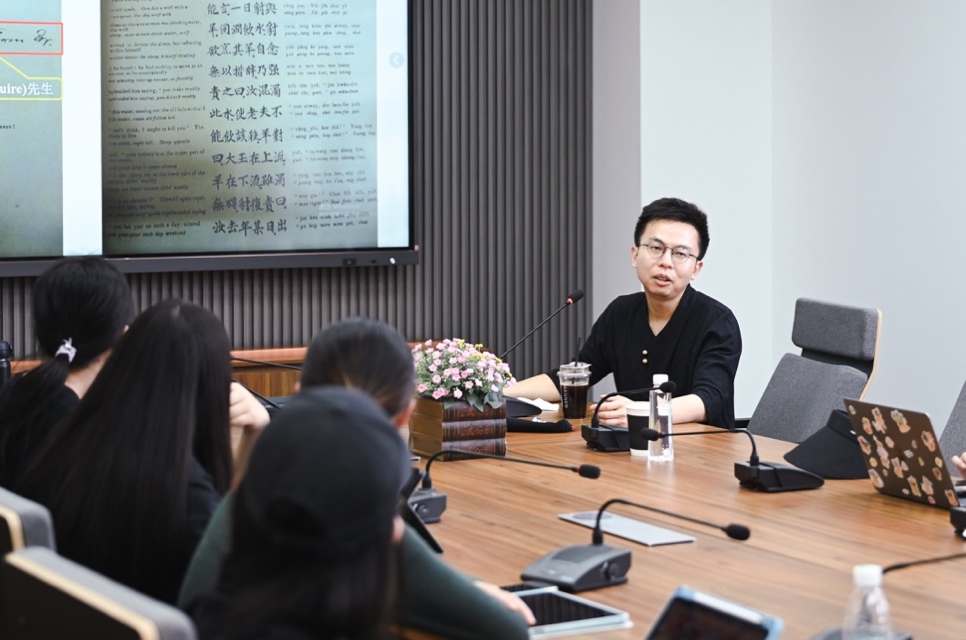 2025年5月6日下午,永利yl23411“聚学讲堂”暨《中国翻译史》本科课程客座讲座“‘西人文体何乃甚类我史迁也!’——林纾与晚清翻译文学”,在外语楼319会议室举行。本次讲座邀请到复旦大学中文系陶磊副教授主讲,由翻译系帅司阳老师主持,永利yl23411副经理赵朝永教授应邀出席,永利yl23411和中文系的众多同学到场参加。