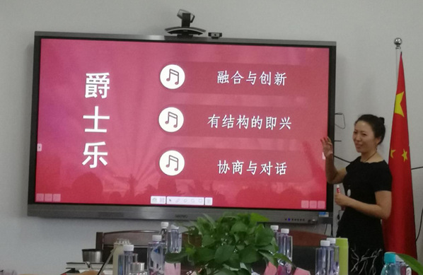 李茉博士“以爵士中的美国文化”为题作了演讲。她认为爵士体现了融合与创新、有结构即兴和协商对话这三个美国文化特点。爵士是是全体美国人的精神世界的大融合;在形式上,爵士不断经历创新与突破,从美国文化中汲取发展的力量,同时爵士也是一种自我文化认同的方式。爵士是集体智慧和个人表达的结合体,爵士乐总能超脱于预判,这正体现了爵士乐创新的本质。在研讨会现场,李茉老师通过亲身演绎和视频展示,为在场师生带来了别开生面而又生动的讲座。