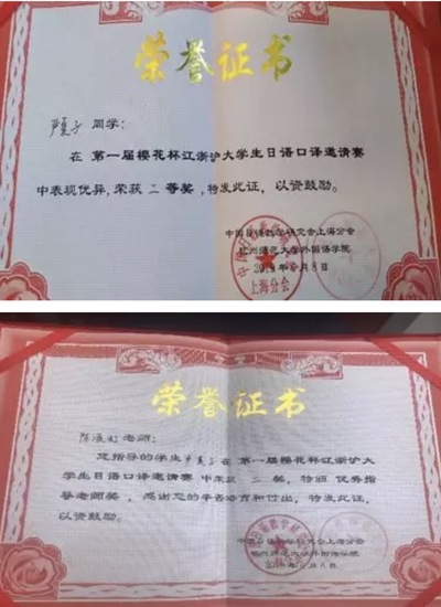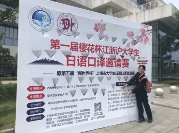 2019年6月8日,第一届“樱花杯”江浙沪老员工日语口译邀请赛在杭州师范大学举行。永利yl23411日语系2016级本科生严夏子同学以排名第四的成绩获得二等奖,日语系陈凌虹老师获得优秀指导教师奖。
