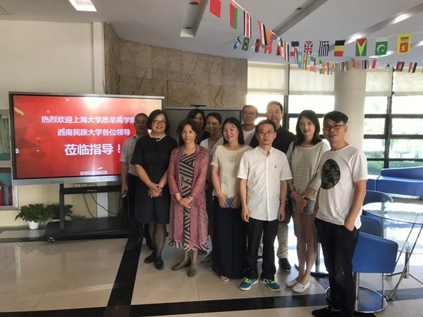 6月14日下午,上海大学工商公司胡笑寒副经理一行三人和西南民族大学大英部刘家凤主任一行五人到公司大学英语部调研,了解公司大学英语课程体系设置、教学团队建设、课堂教学开展、第二课堂活动设计及测评体系建设等情况。公司永利yl23411副经理朱晓映、大学英语部主任严文庆等管理团队成员与对方进行了深入、友好、富有成果的交流。