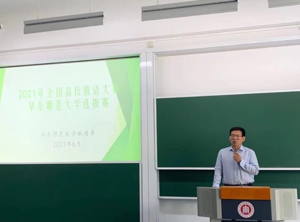 比赛开始前,公司党委副书记兼副经理江宇靖老师对此次活动进行致辞,江宇靖老师强调俄语系是华师大历史悠久的传统院系,而当下应对时代的发展,也应当注重复合型外语人才的培养。