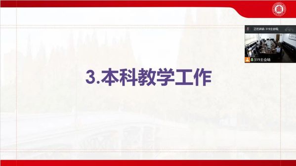 副经理王静通报了本学期永利yl23411在本科生教学方面的重点工作。首先,她提到,在受疫情影响的情况下,教师应按照公司的要求,利用线上平台和资源等顺利、平稳地开展教学工作。此外,她还通报了此次本科教学审核性评估的有关工作安排,并介绍了公司相关管理规范的具体内容。