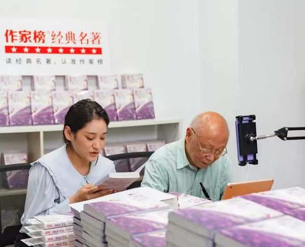何敬业坦言,他一开始只是抱着试试看的想法坐到镜头前,没有想到会取得如此优秀的效果。手机屏幕上密密麻麻的弹幕不断涌入,面对天南地北的读者发来的问题,即便年事已高看不清字,何敬业仍旧耐心地请工作人员帮忙记录整理,花费整整三个小时解答读者疑问。“在作家榜直播间和读者互动,拉近名著和读者的距离,我还遇见了自己教过的员工,感到很亲切。这是坐在书斋里,完全体验不到的。全国各地的读者不需要舟车劳顿,就可以便捷高效收到心仪的好书,在线实时沟通,我自己很满意。”