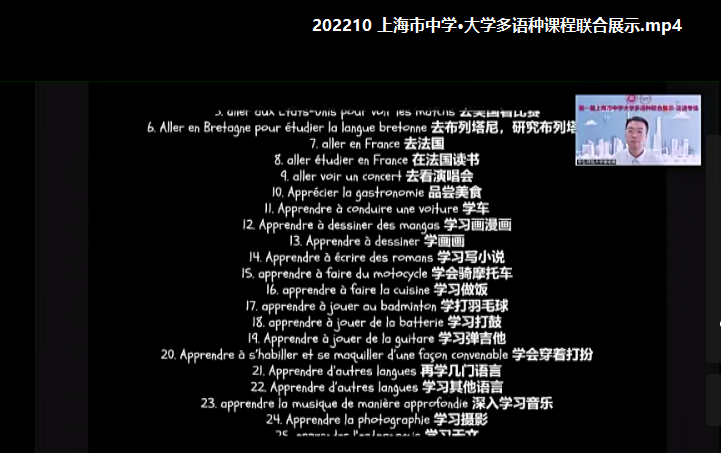 金秋送爽,万里河山披锦绣。上海市法语学子们期盼已久的首届上海市中学·大学多语种联合展示活动(法语专场)于2022年10月19日上午正式拉开帷幕。此次活动为线上线下同时进行,并面向全市所有开设法语课程的中学直播。