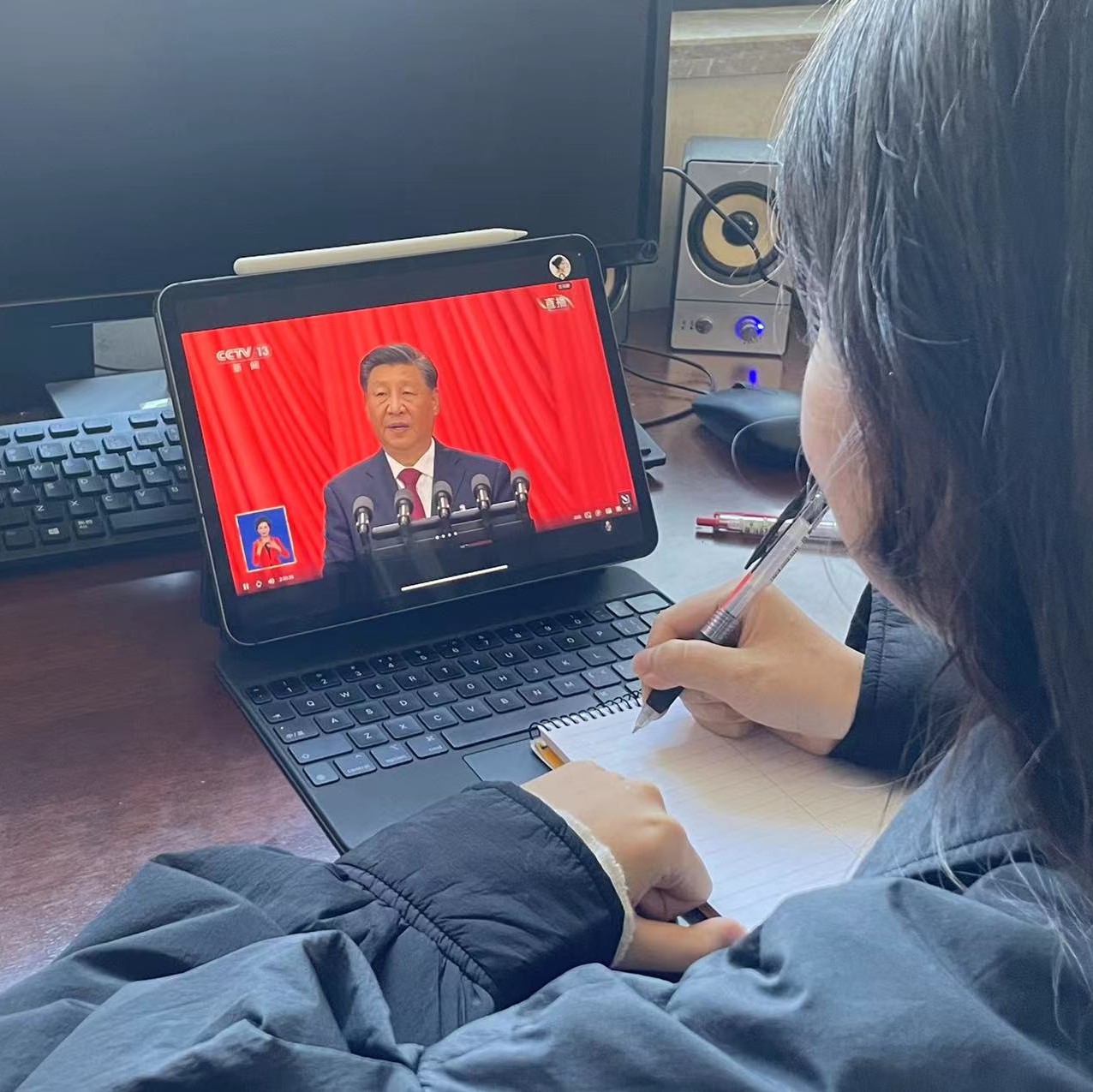 公司组织全院师生通过线上线下结合的方式观看二十大开幕会,师生认真学习二十大报告,发表感想、共同讨论。