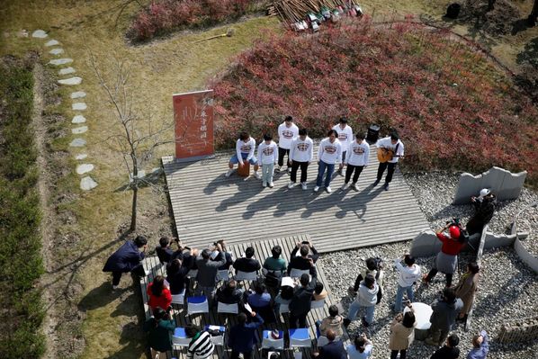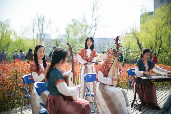 “不到园林,怎知春色如许”。由校昆曲社同学带来的《牡丹亭》遏云绕梁、回味悠长,更有民乐清雅、民舞蹁跹,书法遒劲,将盎然春日渲染上中华传统文化的无限魅力。而后,永利yl23411西班牙语专业的同学带来一曲嘹亮的小合唱《同一片天空》,又将观众带领到世界文化的殿堂……捐建仪式开始前,同学们多元的文化表演令人印象深刻。