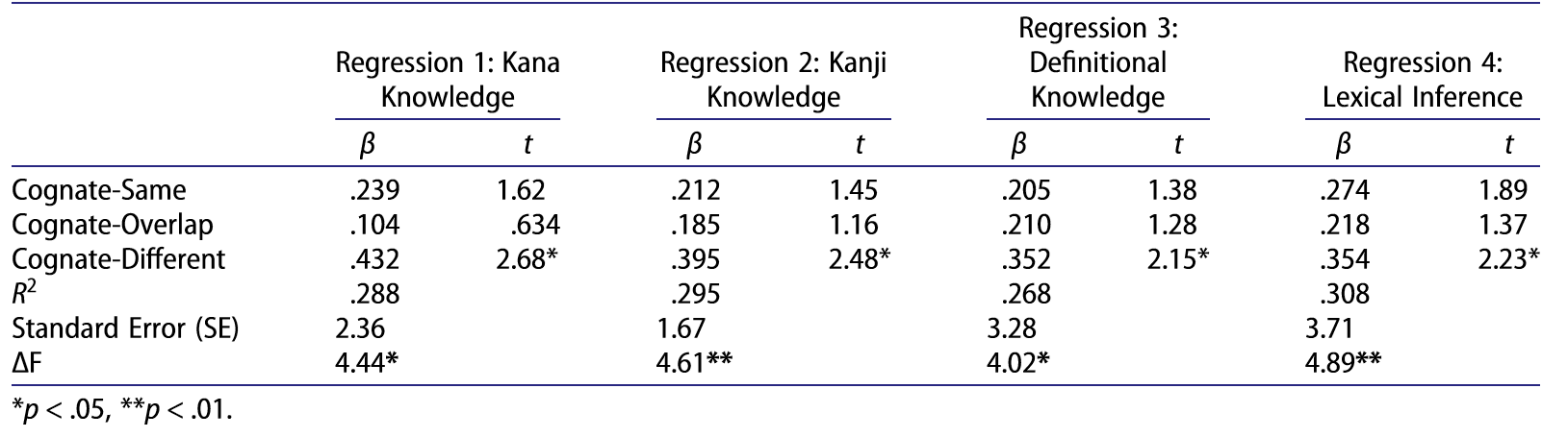 Zhang, H., Han, Y., Cheng, X., Sun, J., & Ohara, S. (2021). Unpacking cross-linguistic similarities and differences in third language Japanese vocabulary acquisition among Chinese college students. Journal of Multilingual and Multicultural Development. DOI: 10.1080/01434632.2020.1865987