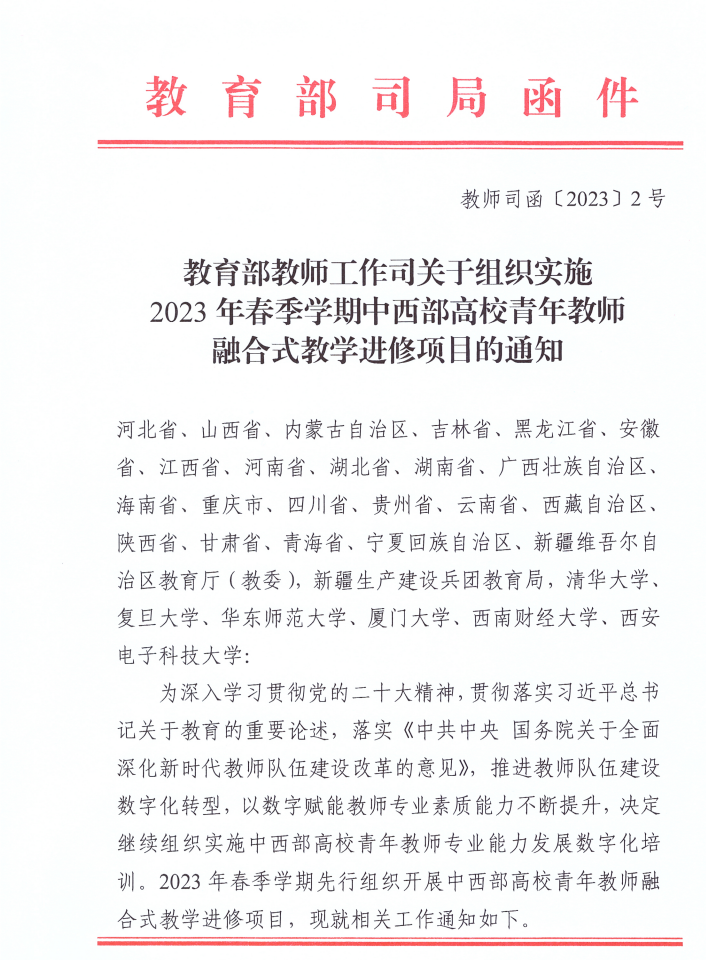 为贯彻习近平总书记关于教育的重要论述,“利用信息技术更新教育理念、变革教育模式”,落实《中共中央 国务院关于全面深化新时代教师队伍建设改革的意见》相关要求,公司与清华大学等八所高校继续承担教育部2023春中西部高校青年教师融合式教学进修项目,开放本校优质课程提供给中西部高校青年教师线上同步学习。