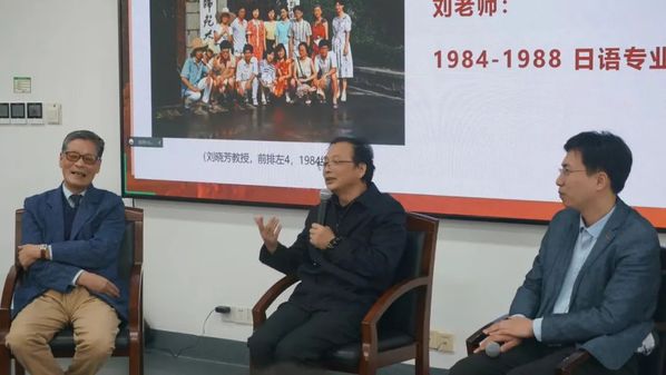 刘晓芳教授回忆了过去在丽娃河畔学习的日子,并为我们讲述了当年日语系的教师们和同学之间的小趣事,刘教授说他非常怀念过去充满烟火气息的生活。在讲述日语学习的故事时,刘晓芳教授提到自己重新回归日本文学教学工作时,还是拿出了本科学习期间外教使用的教材翻看学习。最后,刘晓芳教授为同学们送上寄语:希望同学们对自己的老员工活有规划,要充分利用综合性大学的优越环境,积极地参与到学习和活动之中,并有意识的培养自己的思辨能力。此外,要广泛地去了解多方面的知识,要多去了解自己的国家和文化。