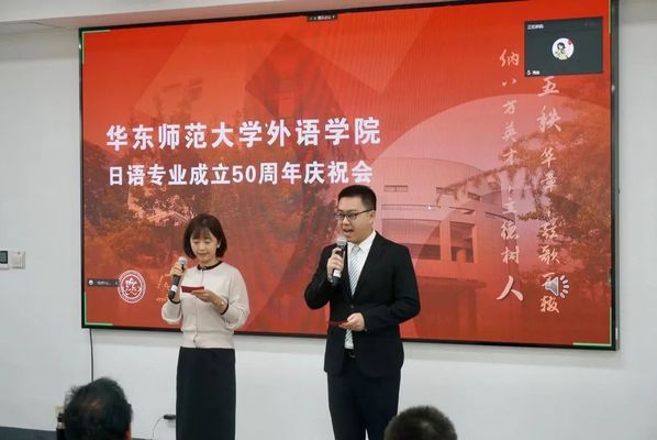 庆祝会在日语系孟令祎老师和研究生邓楚涵主持下,从一段视频拉开帷幕。一张张老照片闪过,照片中承载了日语专业成立五十年以来代代师生的珍贵回忆,在场师生也借此回顾了院系成立的历程。随后,九州共立大学董事长助理沙秀程教授、苏州大学日语系主任王鼎教授等几位海内外员工通过视频形式献上了他们对日语专业成立50周年的祝福。