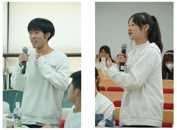 郭侃亮老师则称自己为一个节点见证者,正是郭老师在读期间华东师大日语系从普陀搬到了闵行校区,2004级的员工们不仅曾在丽娃河畔居住,也亲历了闵行校区的建设。虽然初期闵行校区的建设还未全部完成,但还是能让员工们感到一种强烈的归属感。老师们在课堂上认真负责的同时,私下也会与员工们有许多交流。郭侃亮老师还分享了当年参加第二届“中华杯”日语演讲大赛、靠不服输的精神最终获得了一等奖的故事。郭侃亮老师说自己许多兴趣爱好的起点都是大学阶段,并与现场两位同学进行了互动,他强调大学这个阶段给了我们去试错、去创造、去尝试的机会,因此除了学习以外,期望同学们也能够合理利用自己在校园中的时光去寻找自己的兴趣和梦想,成长为一个有丰富生活的人。