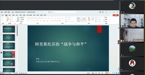 2022年10月29日晚,应永利yl23411邀请,中国人民大学文公司副教授、古典学教研室主任、中国比较古典学会常务理事彭磊副教授做了主题为“阿里斯托芬的‘战争与和平’”的讲座。本次讲座是“古希腊文学与思想史”系列讲座第3讲,由英语系罗峰副教授主持,200余名校内外师生通过腾讯会议和B站在线参与。