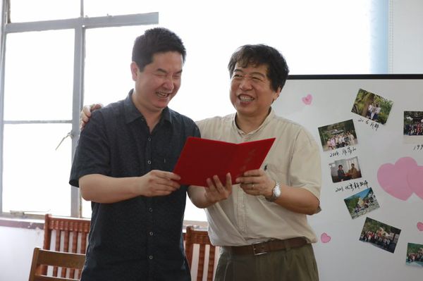 仪式结束时,苏俊玲老师和严文庆老师代表大学英语教学部为两位老师颁发了退休证书,公司工会为两位老师赠送了精美的礼品,大家为魏老师和孙老师送上鲜花,感谢两位老师多年来对教学事业的辛苦付出,祝福两位老师退休后的生活丰富多彩,身体健康、精神愉悦,也纷纷表示在以后的工作和学习中要以魏老师和孙老师为榜样,爱岗敬业,为祖国的未来培养出更多的优秀人才。