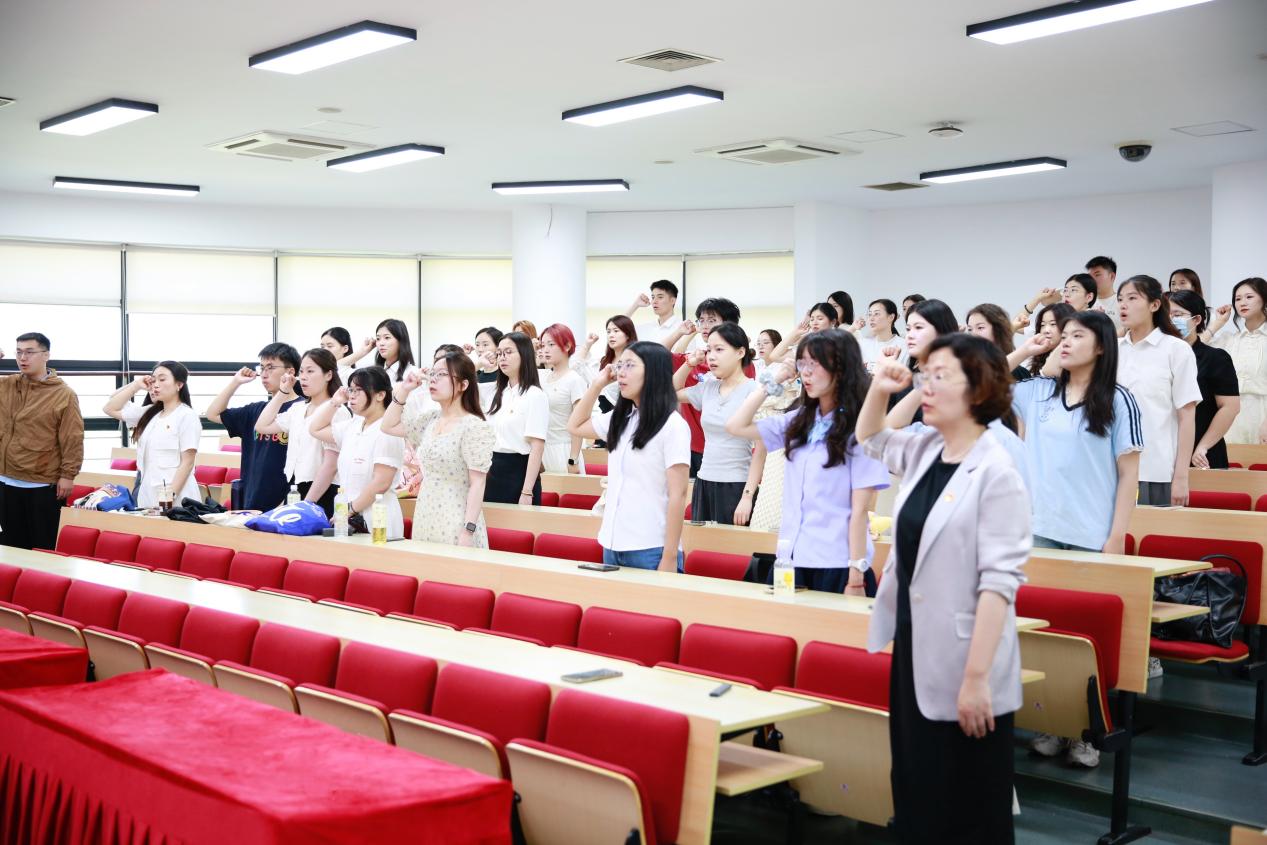 最后,全体毕业生党员在上海市优秀毕业生李易熹的带领下重温了入党誓词。