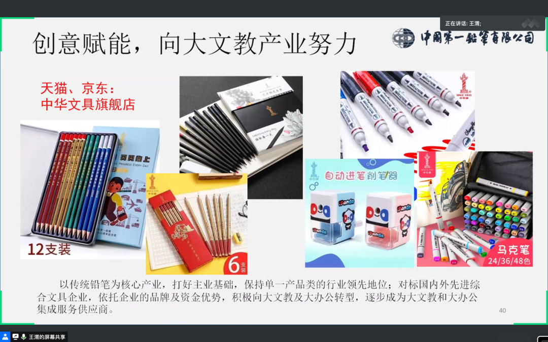 讲座最后,王渭老师分享了他对传统制造业出路的一些思考。他认为,科技再发达,传统书写所能带来的仪式感和美感都不会被取代,传统的铅笔制造业在未来依然充满着生命力。但是,传统制造业也面临着缺乏创意、营销手段单一等问题,需要在依托品牌文化与品牌历史、稳抓商品品质的前提下,学会引导消费,创造需求,方可走出目前困境。