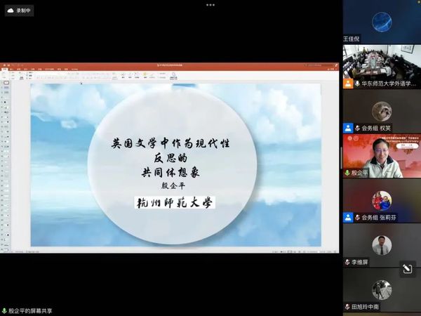 杭州师范大学殷企平教授首先强调了他报告的中心论点:必须在现代化语境里审视共同体书写。他从启蒙思想家提出的现代社会价值观和康德的哲学思想切入,进而解释了何为判断力危机,共同体其实是人们希望的表现。殷教授希望把批判视为“现代性”和“共同体”的联结,并介绍了“现代性”的起点和定义,对现代性赋格中的共同体因素进行了补充说明。以华兹华斯、雪莱、阿诺德等人的作品为例,殷教授详细分析了英国文学家们如何通过文学作品形塑共同体,对现代性进行回应和反思。最后,他提出了反思现代性就是形塑共同体这一重要观点。