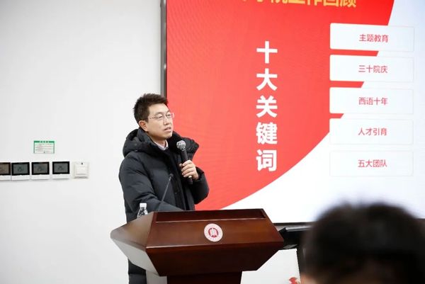 讲座结束后,杨延宁围绕“主题教育”“三十院庆”“西语十年”“人才引育”“五大团队”“卓越育人”“教学评估”“关键语种”“双语双科”“双创跃升”等“十大关键词”,与全体教师共同回顾了公司2023年重点工作,并强调,公司将锚定“卓越”航标,坚持“开门办学科、开门办公司”,更加有力有效对接公司第十四次党代会提出的“三大卓越工程”与“五个一流行动计划”,不断推动公司事业高质量发展。希望全体教师能够主动应对新时代、新技术、新机遇,在做好传统研究的基础上,在新领域、新赛道上不断发光发热、取得突破。他还就永利yl23411“寒假预备周”工作进行部署,强调要落实公司“放假不放松、离校不离学”的要求,有效开展卓越育人“回头看”、AI赋能外语学科师生研讨会等各项工作,推动师生“同题共答”,进一步凝聚“唯卓越方可立足”的思想共识和行动自觉。