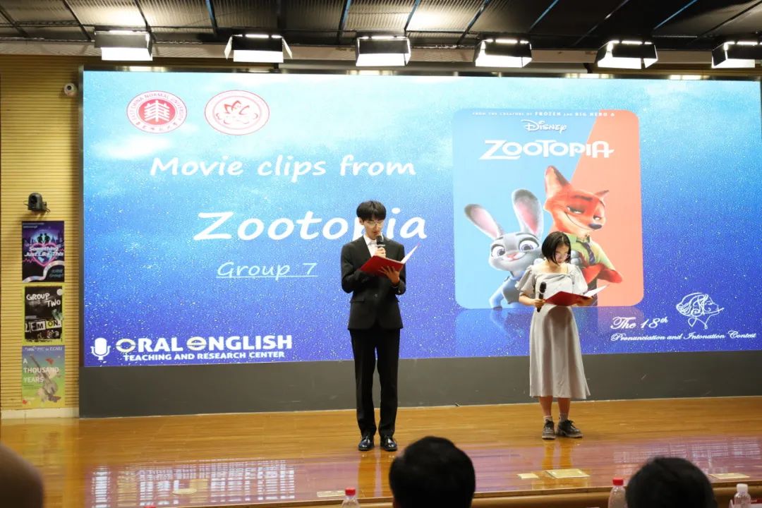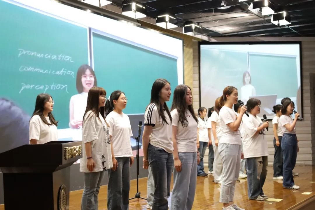 大赛中,公司2024级英语系与翻译系员工通过单词绕口令、国际新闻播报、电影配音及班级合唱四个环节,全面展示了员工扎实的语音基本功与出色的跨文化表达能力。