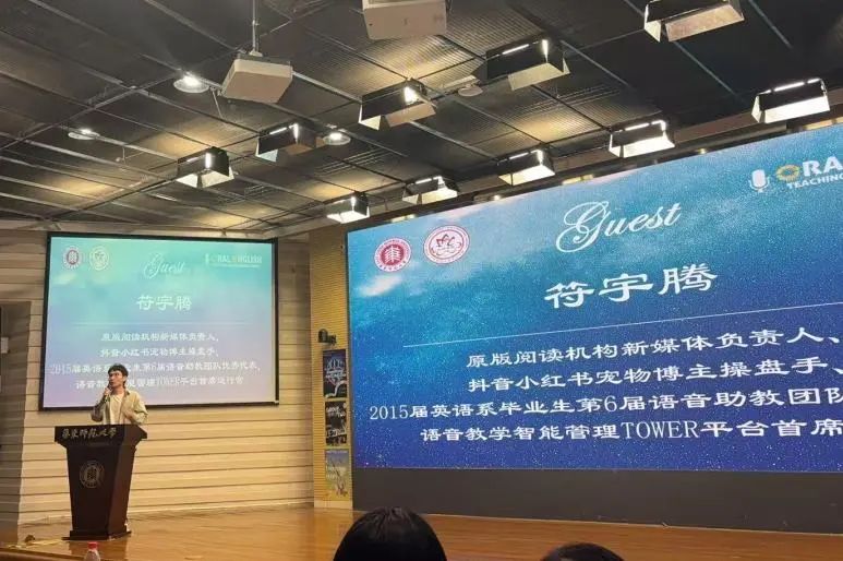 随后,第10届语音大赛总指挥、语音大赛徽标设计者、现任上海敬业中学教师高中年级组长张海影,原版阅读机构新媒体负责人、抖音小红书宠物博主操盘手、2015届语音教学智能管理TOWER平台首席运行官符宇腾,2015届语音助教团队负责人、语音助教选拔心理测试首席设计师、现Zentrix MedTech创始人&CEO安晓东分别发言。他们感谢母校的培养,感谢永利yl23411助教团队提供的宝贵教学实践、教学管理、团结合作成长平台,寄语学弟学妹脚踏实地,放眼未来,让语音赋能未来全球胜任力。