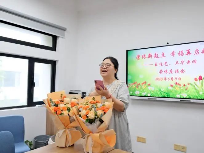 在这充满温情与敬意的氛围中,郭雯婷、杨佩桦回忆起与王佳艺、卫华老师共事的点点滴滴,那些或难忘、或有趣、或感动的瞬间,如同璀璨星辰,点缀着大家的职业生涯,也让两位老师的形象在大家心中愈发鲜活与立体。王佳艺、卫华老师也分别发表了荣休感言,她们满含深情地回顾了在华东师大的工作经历,对公司领导、同事以及员工们表达了深深的感激之情,同时也对大学英语教学部的未来发展送上了美好祝福。