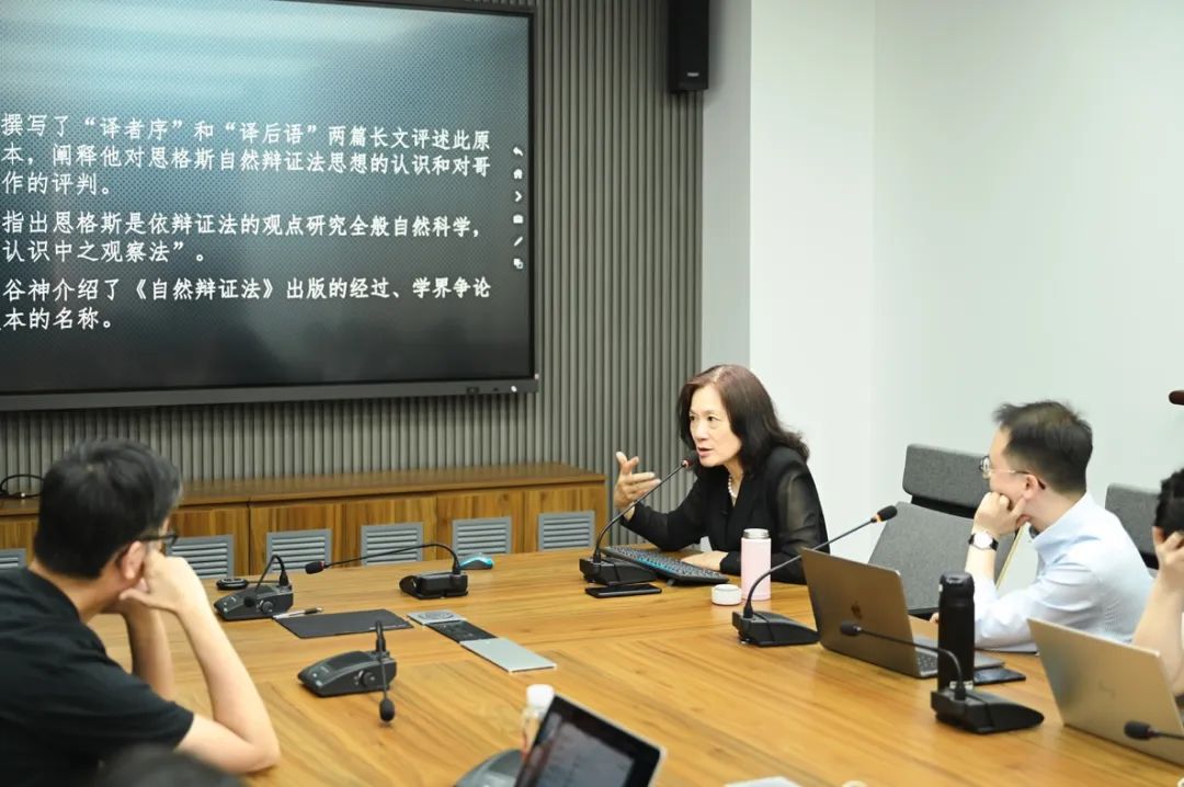 讲座结束后,高晞教授与在场师生进行了互动,一一解答了大家的问题,主要涉及翻译与思想的双向互动。讲座围绕《自然辩证法》的早期汉译展开,厘清了“辩证法”术语在中日语境中的译法演变,梳理其从德文手稿经俄、日传入中国的翻译路径及关键人物贡献,展现了中国对其的批判性接受与本土化过程。讲座不仅重构了自然辩证法进入中国的历史脉络,更提示我们将翻译视为思想转化与文化重构的过程,从而深化对知识如何在历史中流动与变形的理解。
