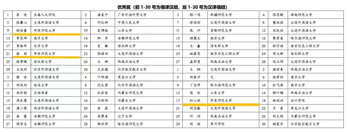 “俄罗斯文艺”文学翻译奖·全球俄汉互译大赛,作为国内一流翻译赛事,已经举办了十五届。第十五届全球俄汉互译大赛由广东外语外贸大学翻译学研究中心、莫斯科大学高翻公司、《俄罗斯文艺》《翻译理论》(俄)、延边大学联合举办,旨在推动中俄两国翻译事业的发展和翻译人才的培养。 2024年2月29日,第十五届全球俄汉互译大赛评奖揭晓。俄语系多位同学在此次大赛中荣获佳绩,其中2022级硕士研究生张丽同学获得汉译俄组一等奖,2021级本科生钱佳蕾、2022级硕士研究生张丽同学均获得俄译汉组优秀奖,2022级博士研究生孙心悦获得汉译俄组优秀奖。永利yl23411获得组织奖。 近年来,俄语系本科、硕士、博士各个层次的同学,都积极努力,不断提升自身俄语水平,并且积极参与国内外的各项俄语相关专业赛事,屡获佳绩,充分展现了永利yl23411优秀的教学水平以及员工的良好风貌。 从左至右依次为:钱佳蕾、张丽、孙心悦