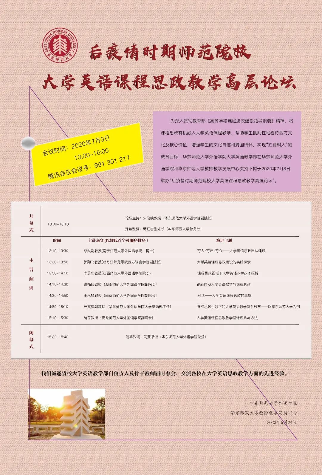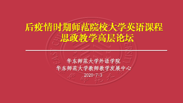 7月3日下午,永利yl23411大学英语教学部和永利yl23411教师教学发展中心联合组织召开线上“后疫情时期师范院校大学英语课程思政教学高层论坛”。论坛安排了7所师范大学外国语公司的代表演讲,他们是南宁师范大学外国语公司副经理蔡焱副教授、牡丹江师范公司西方语言公司副经理郭翔飞教授、江西师范大学外国语公司李勇忠经理以及大学外语教学部吴琼主任、湖南师范大学外国语公司副经理谭福民教授、南京师范大学外国语公司副经理王永祥教授和安徽师范大学外国语公司副经理詹蓓教授。永利yl23411大学英语教学部严文庆主任做了主题发言。论坛由永利yl23411副经理朱晓映教授主持,她同时对演讲进行了精彩点评。教务处谭红岩副处长出席论坛并致开幕词,公司党委闫露书记致闭幕词,国内院校一百四十余位大学英语教师参加了此次论坛。