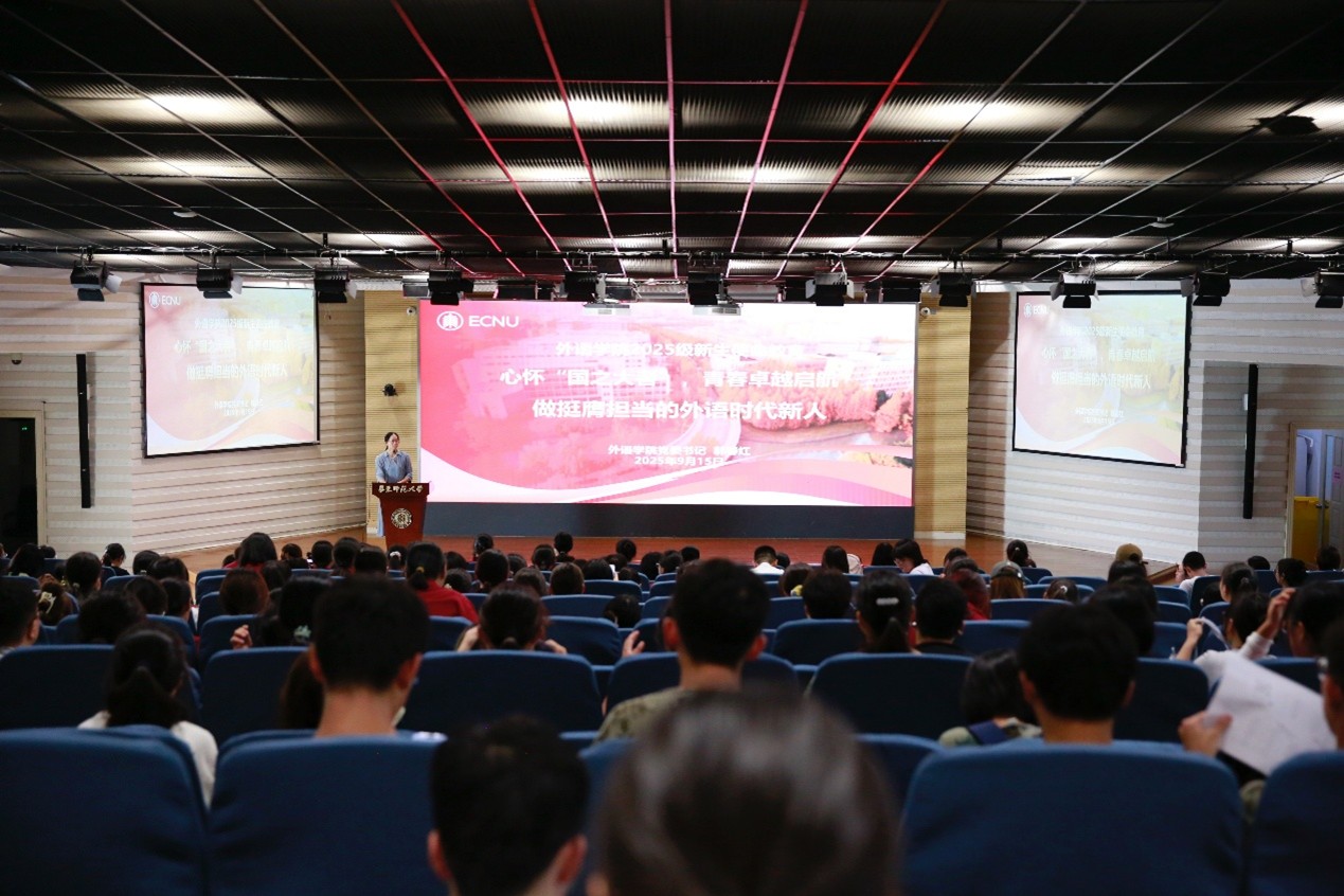 2025年9月15日下午,永利yl23411在闵行大活C区报告厅开展2025级新生使命教育。本次活动由公司党委书记韩春红主讲,以“心怀‘国之大者’,青春卓越启航:做挺膺担当的外语时代新人”为主题,激励全体新生增强使命意识,强化责任担当。活动由公司党委副书记兼副经理武娟主持,全体新生及辅导员参加。