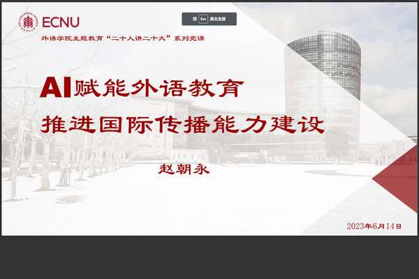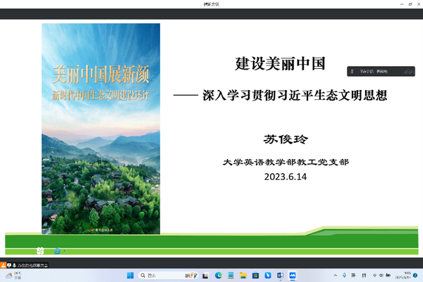 6月14日上午,大学英语教学部教工党支部在腾讯会议开展主题党日活动。党支部书记苏俊玲主讲“建设美丽中国”——深入学习贯彻习近平生态文明思想微党课,永利yl23411副经理赵朝永主讲“AI赋能外语教育,推进国际传播能力建设”微党课。苏俊玲主持会议。