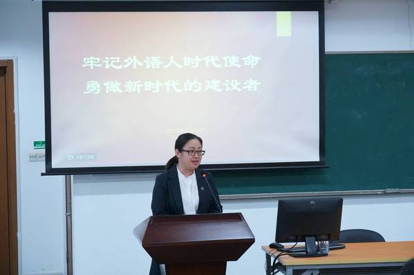 闫露书记主要围绕“牢记外语人时代使命,勇做新时代的建设者”的主题,从三个方面为2019级“外新人”上了一堂具有外院特色的党课。