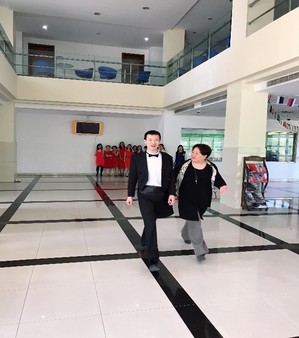 5月9日下午1时,第二届“丽娃群芳秀”——女教师服饰展示比赛在设计公司时尚中心准时拉开帷幕。外院代表队排在第二个出场,以王朔的小说“一半是海水,一半是火焰”为主题。外院佳丽们分别身穿蓝色和红色裙装交替出现。