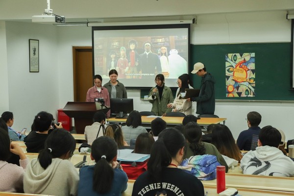 比赛的第一个环节是来自大二员工的电影配音比赛。来自大二选手们积极投入,一人分饰多角,用生动的语音和洋溢的情感,为大家带来了《死也要毕业》、《超能陆战队》、《疯狂动物城》及《神偷奶爸2》等电影片段的西语配音,再现了经典场面。最终,“Bombón糖果队”凭借精湛的表现赢得了团体奖。刘思瑜和叶超楠同学则囊获“最佳个人奖”。