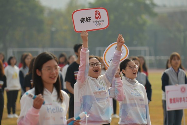 入场式表演精彩纷呈,为了将运动主题和永利yl23411特色更好地融合在一起,同学们分成了花球组、表演组、观众组和举牌组。花球组的同学们位列首排,手举花球,巧妙装点了整个方阵;表演组的同学们展示了网球、乒乓球、踢毽子、跳绳、棒球、篮球等多项运动;观众组举着横幅喝彩助威;举牌组则举着印有七届不同国家举办的奥运会的会徽和七种语言的“你好”的牌子。外语人不仅有着昂扬向上的青春活力、对运动的热情,更是世界多语种、多文化之间的传播者。正如入场式口号“青春青春如火,超越自我,永利yl23411,奋勇拼搏”所表达的那样,外语学子们将继续奋勇向前,顽强拼搏,秉持运动员精神,做时代的弄潮儿! 闫露老师更是举起印有北京奥运会会标和你好的牌子,加入了表演队列。