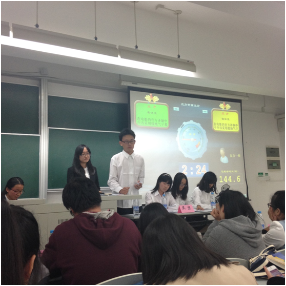 2014年11月10日晚6点,永利yl23411本科生影视翻译工作室成员齐聚一教311,参与、观赏了2014年永利yl23411“言”“外”之意辩论赛开幕战,辩题为《在电影的官方译制中是否应该采用接地气字幕?》,与工作室的翻译工作息息相关。正反双方各抒己见,在唇枪舌剑之中展现了严密的思维以及对翻译独到的见解。赛后,成员们纷纷交流感想。通过这次活动,工作室成员对于影视翻译有了新的思索和认识。