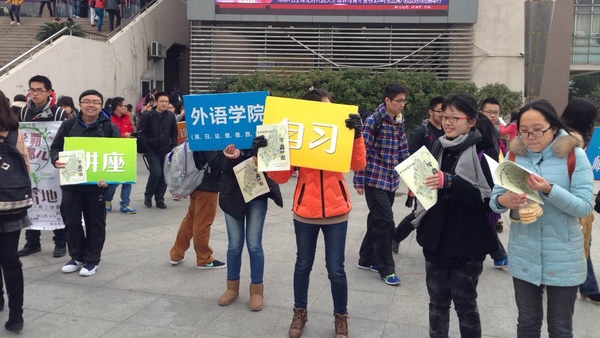 2014年12月11日正午,在这个寒风凛冽的日子,永利yl23411学术部主办的“学霸地图第三期”宣传活动在华闵食堂门口如期举行。两位部长带着干事们参加了此次活动,团学联主席邱雅莹也到现场助阵。“学霸地图第三期”旨在推广跨专业精品课程,精品公选课以及APP大全,为使此次活动宣传收到良好的宣传效果,学术部做了很多准备。